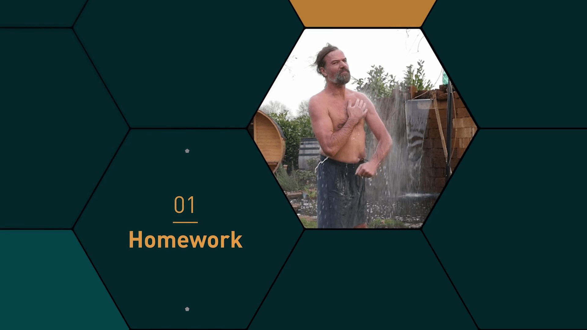 Před­sta­ve­ní stu­den­tů na videu a jejich cílů (mimo­cho­dem jed­na stu­dent­ka zmi­ňu­je pro­dě­la­nou Lym­skou bore­li­ó­zu se zřej­mě dlou­ho­do­bý­mi násled­ky). Wim Hof vysvět­lu­je 3 pilí­ře Wim Hofo­vy meto­dy: