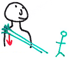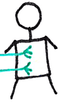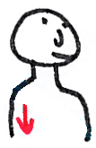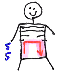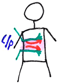 Draw this only if absolutely necessary to make the drawing clear or if you particularly want to point out that the massage therapist is kneeling, standing at a specific place, etc. As a standard, we use green color for this. The green color is also used for trigger points and some other special features. Here are some examples: