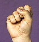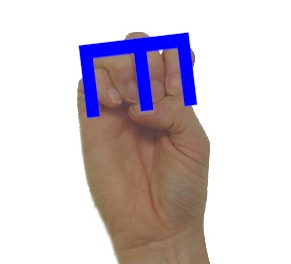 In Tomek’s notation, we distinguish different „hand shapes“ of massage therapist’s hands. If a shape resembles a letter, we note it down very quickly and easily using that letter. The following table gives a basic overview: